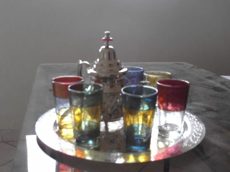 Pour faire un vrai thé « à la marocaine » , il faut tout d’abord prendre son temps. Acheter du thé vert, mettre une pincée dans une théière puis y ajouter un peu d’eau chaude (l’équivalent d’un petit verre à thé). Vider cette eau, dans un verre et garder le. Recommencer l’opération. secouer ensuite la théière et vider l’eau (alors sombre). Puis mettre la théière sur le gaz et faire bouillir quelques minutes. Ajouter un bon bouquet de menthe et 1 gros morceau de sucre. Laissez infuser quelques minutes.