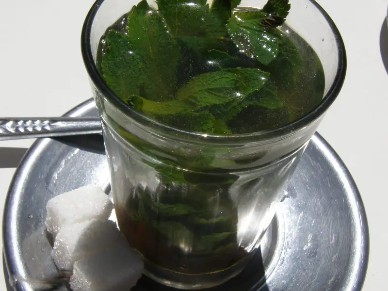Au Maroc, on commence toujours par un bon thé à la menthe. Humer l’odeur  qui s’en dégage. Fraîche, séchée ou en huile essentielle, la menthe est une herbe aromatique aux multiples vertus. En infusion, elle est rafraîchissante l’été et réconfortante l’hiver!  Pour celles et ceux qui sont déjà venus au Maroc, ce verre de thé vous transportera « au bled ».  Les Mahababikoum sonneront à nouveau à vos oreilles.